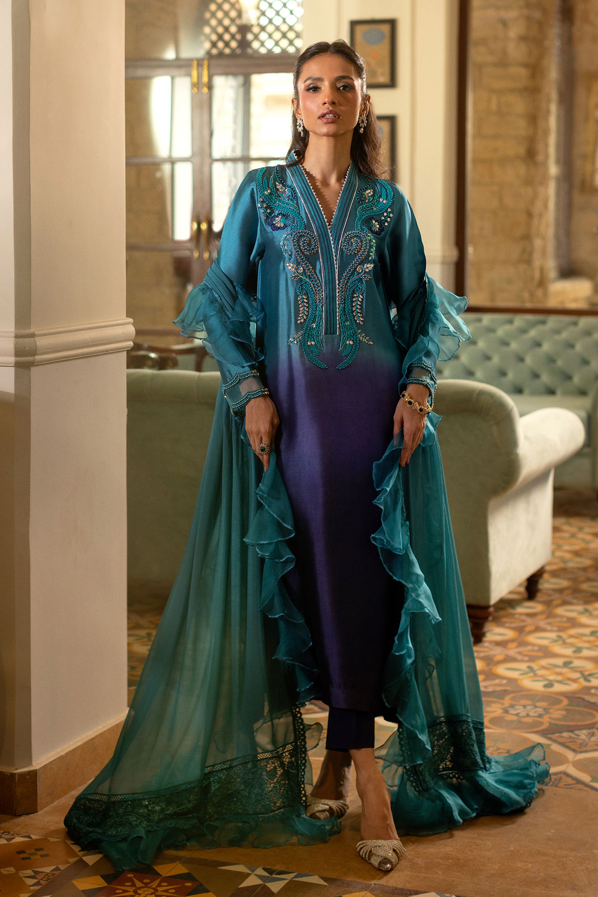 Color: Ombre Fabric: Raw Silk Work Details: Embroidered And Embellished