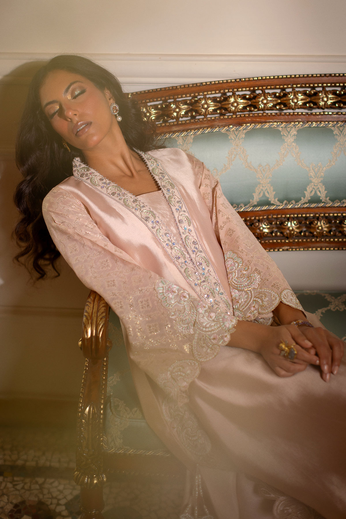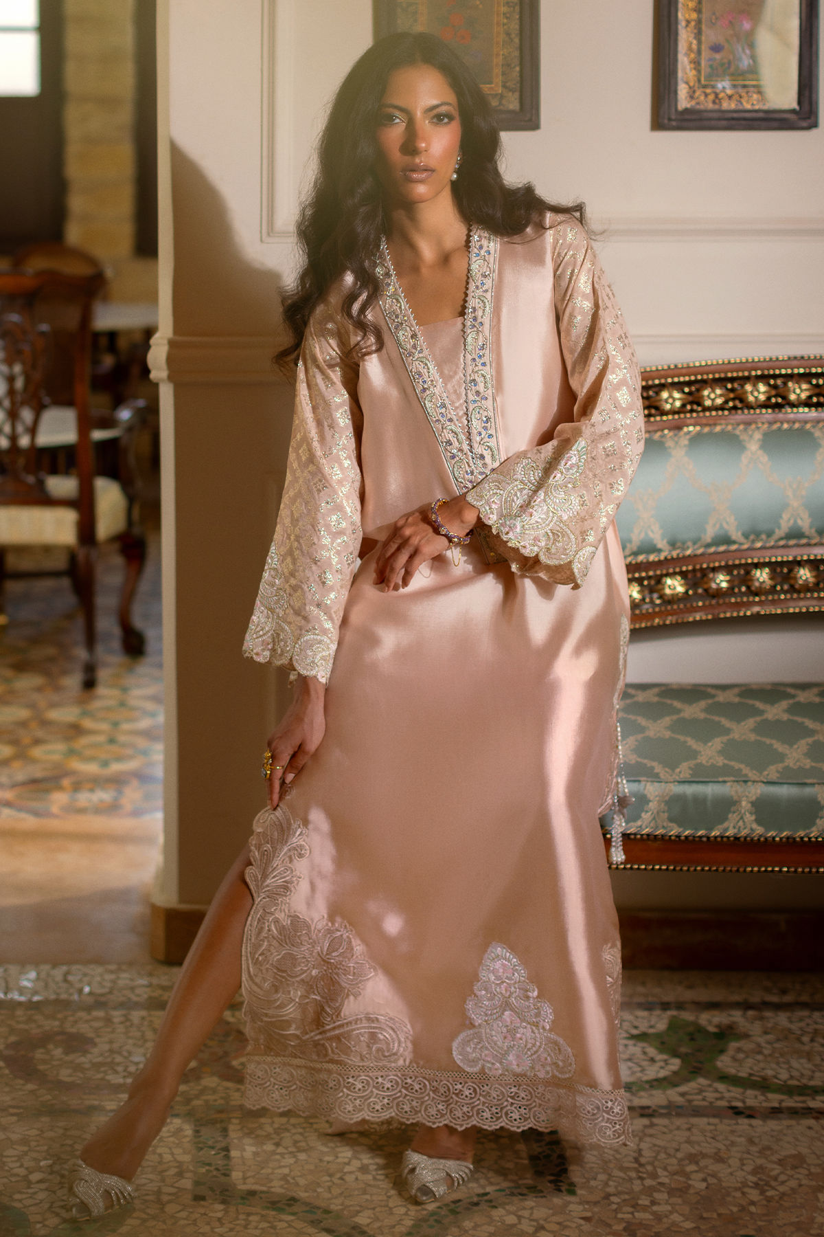 Color: Sand And Peach Ombré Fabric: Raw Silk Work Details: Embroidered And Embellished