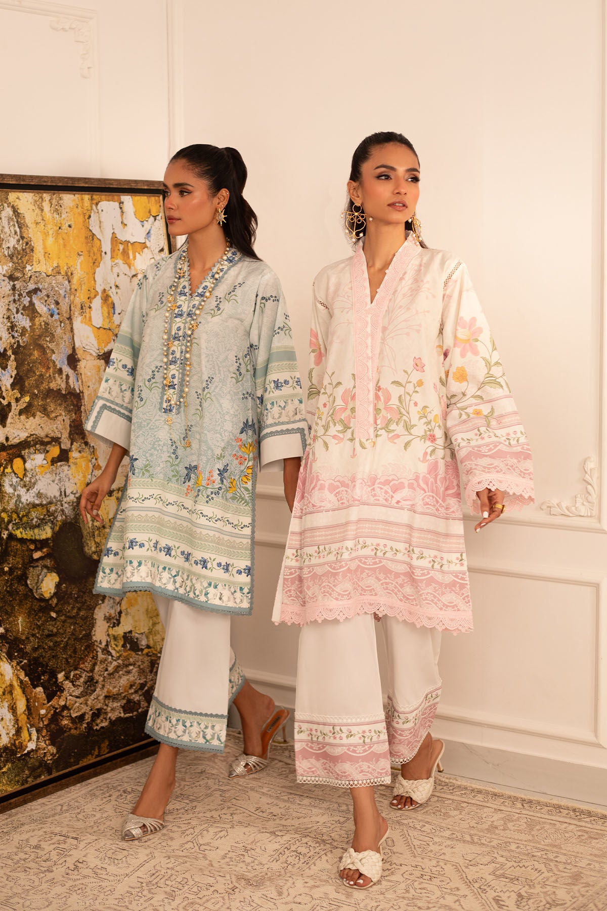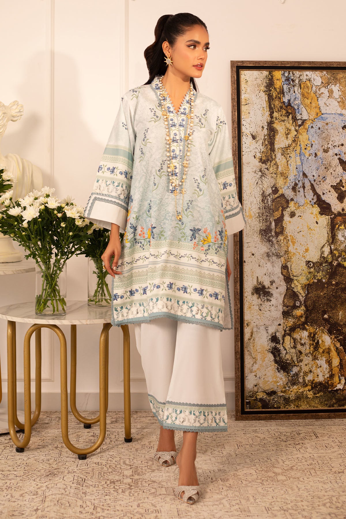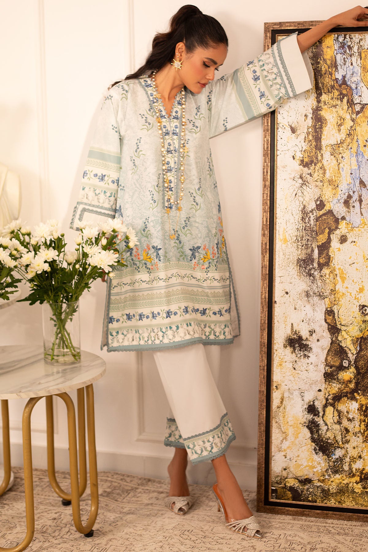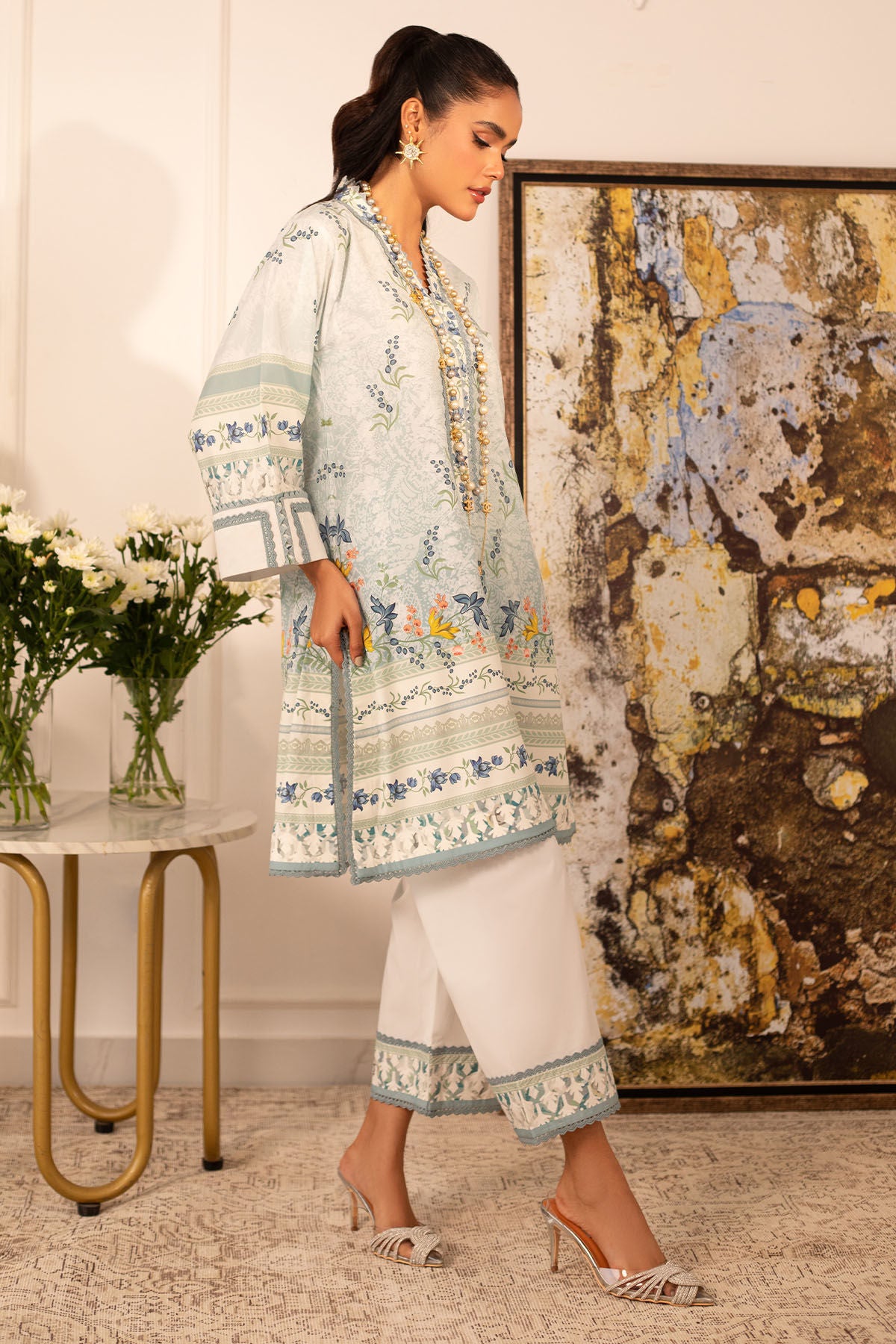 Quirky, trendy yet elegant co-ord set on crepe silk featuring balanced and carefully crafted prints, enhanced with lace details, is a must-have in your closet this summer.