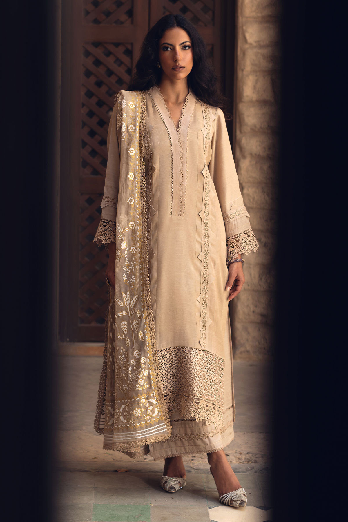 Color: Beige Fabric: Raw Silk
