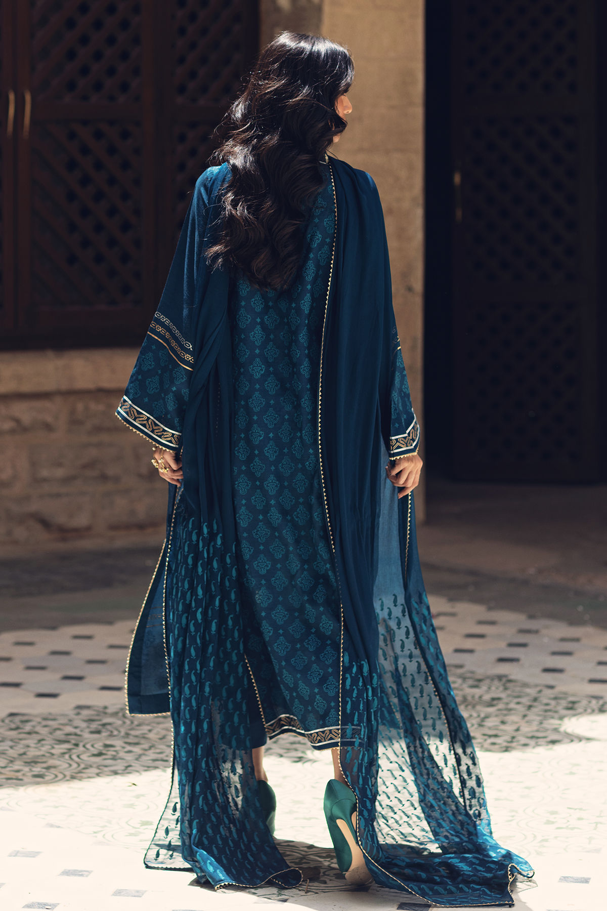 Color: Teal Fabric: Raw Silk Work Details: Hand Block Printed
